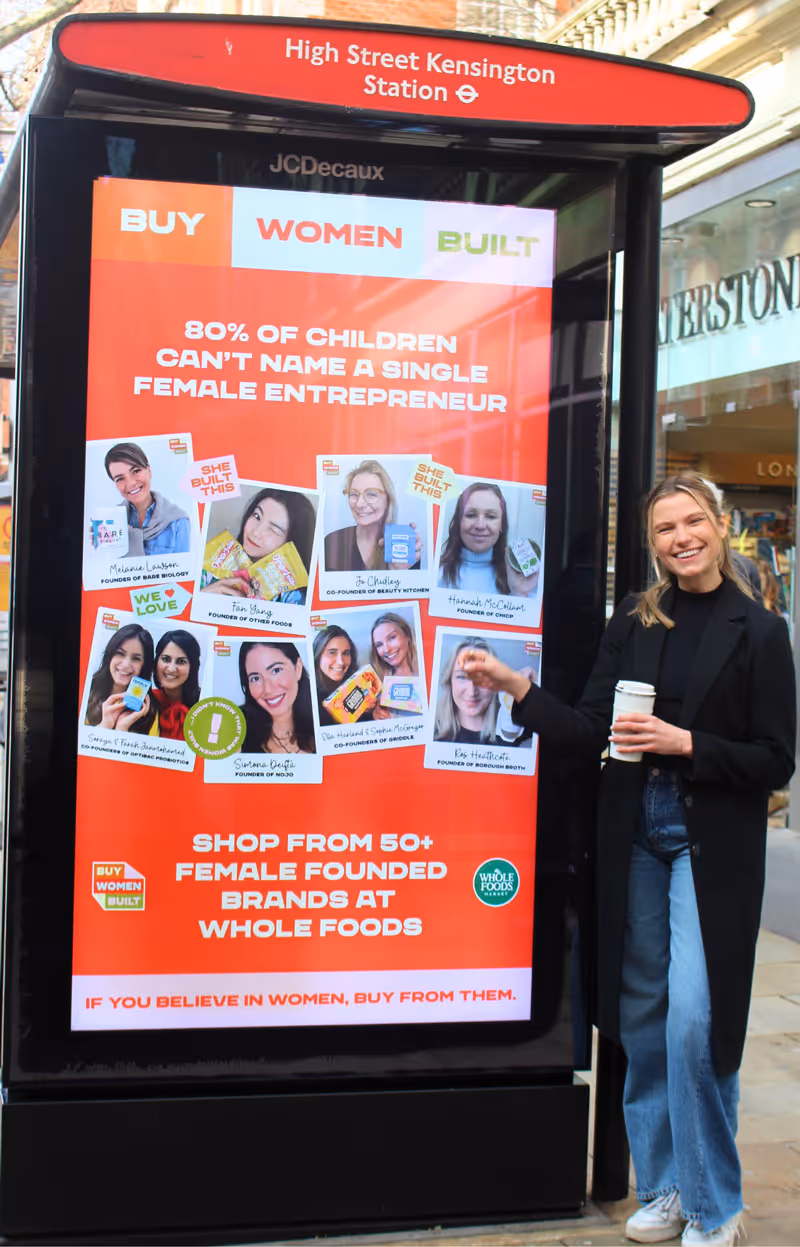 JCDecaux amplified the International Women’s Day 2024 initiative by securing prominent central London locations to showcase the women behind Buy Women Built brands. The campaign highlighted the diversity of these founders and demonstrated the power of representation. During this time, Londoners saw women whose stories and backgrounds reflected their own, reinforcing the message that entrepreneurship is open to all.